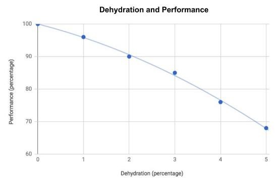 کمآبی به میزان جزئی (۱–۲٪ از وزن بدن) ممکن است علائمی نداشته باشد، اما با گذشت زمان و افزایش شدت تمرین، افت عملکرد دیده میشود. مطالعات نشان دادهاند کاهش بیش از ۲ درصد وزن بدن ناشی از تعریق به طور قابلتوجهی توانایی هوازی (استقامتی) را کاهش میدهد. این کاهش عملکرد حتی در شرایط خنک و خشک نیز مشهود است، در گرما اثرات نامطلوب تشدید میشود. از نظر قدرت و توان خروجی عضلانی، دادههای بهدستآمده نشان میدهند کمآبی حدود ۲–۵ درصد، افت جزئی در قدرت (~۲٪) و توان (~۳٪) و کاهش بیشینه استقامت انفجاری (~۱۰٪) ایجاد میکند. این مقادیر ممکن است در شرایط تمرین مقاومت طولانیمدت یا تکرارهای مکرر بیشتر خود را نشان دهند. مطالعات نشان دادهاند که حتی اگر عملکرد خام مانند قدرت یک تکرار (بهعنوان مثال لیفت سنگین) در کمآبی ملایم تا حدودی محافظت شود، کارآیی عصبی-عضلانی کاهش مییابد که میتواند خستگی زودرس را تسریع کند. سرعت (توان انفجاری) نیز اندکی کاهش مییابد که در ورزشهای سرعتی-انفجاری قابلتوجه است.