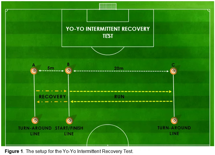 تست یویو (Yo-Yo Intermittent Test) یک آزمایش میدانی برای اندازهگیری ظرفیت استقامتی بازیکنان ورزشهای دورهای (مانند فوتبال، بسکتبال، کریکت و …) است که توسط جنز بانگسبو در دهه ۹۰ میلادی معرفی شد. در این تست، شرکتکنندگان بین نشانگرهای مشخص (مثلاً در ۵ و ۲۵ متری) دو بار رفت و برگشت میکنند و پس از هر دور کوتاه، یک استراحت فعال (پیادهروی) کوتاه انجام میدهند تا شبیهسازی ماهیت «توقف و شروع» ورزشهای دورهای صورت گیرد.