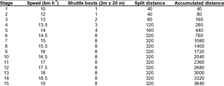 - خطاهای متداول: اجرای نادرست مسافت (مثلاً کوتاه کردن مسافت ۲×۲۰ متر)، استفاده از نشانگر یا صدای بوق غیراستاندارد، محاسبه نادرست امتیاز (دورهای کامل)، یا عدم ارائه گرمکردن کافی قبل از تست میتواند دقت نتیجه را کاهش دهد. برای مثال، مسافت آزمون باید دقیقاً ۲۰ متر رفت و برگشت باشد و تأخیر یا شتاب بیش از حد در شروع هر دور به خطا میانجامد.